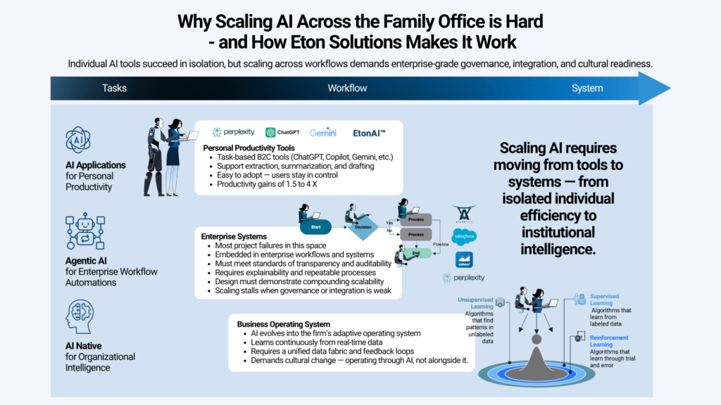 At Eton Solutions, we’ve spent years engineering an architecture that closes this gap, helping firms evolve from isolated tools to a truly AI-native operating model.